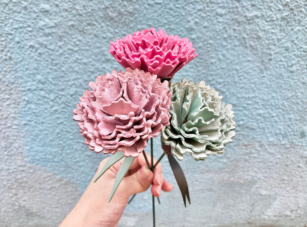 皮革康乃馨(連木製花架)|皮革D.I.Y材料包